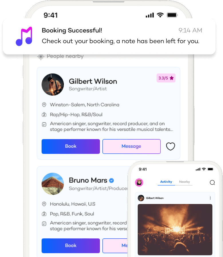 Browse through verified coaches and musicians, filter by genre, location, and expertise.